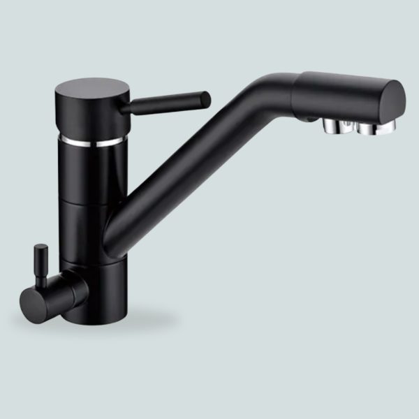Equipada com três vias independentes — água filtrada, quente e fria —, oferece versatilidade e praticidade, permitindo separar a água de consumo da água de uso corrente. O design ergonómico dos manípulos e o bico de grande amplitude garantem conforto e facilidade de utilização, enquanto o acabamento premium confere um toque de exclusividade ao ambiente.